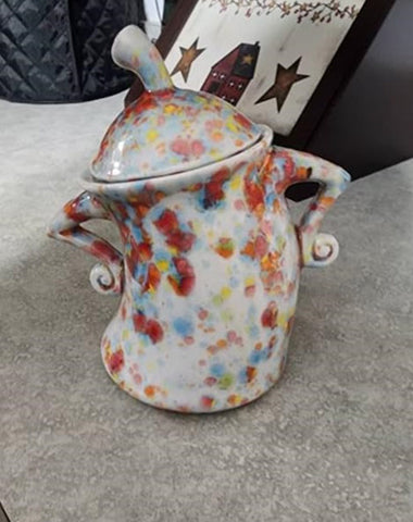 Detta är en gåva jag gav till min mamma. Hon älskar dessa konstnärliga ornament och köksredskap. Färgerna och bilderna är desamma. Det fysiska mönstret är också mycket vackert. Mamma satte det på vardagsrummet. Hon är mycket nöjd.